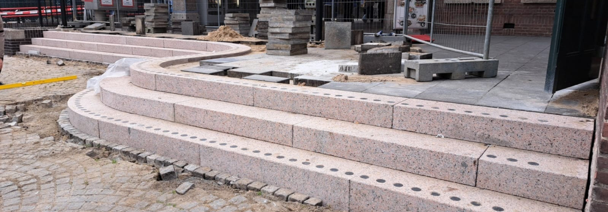 De trappen van Weert zijn weer in ere hersteld. Door jarenlang intensief gebruik en het inwerken van strooizout waren de oude treden versleten en brokkelden ze steeds meer af. Om valincidenten te voorkomen was een grondige renovatie van de trap noodzakelijk. Elke trede woog ongeveer 400 kilo en zijn met een kraan verwijderd. De treden waren zo geplaatst dat ze overlappend op elkaar rustten, waardoor individuele vervanging pet trede onmogelijk was. Door de treden te verwijderen, kon ook de onderliggende staal- en betonconstructie worden gecontroleerd en waar nodig verstevigd of gerepareerd om toekomstige schade te voorkomen. De granieten traptreden zijn 1-op-1 vervangen, met dezelfde detaillering, materialisatie, kleur en afwerking als de originele treden. De volledige vervanging zorgt niet alleen voor een uniforme uitstraling van de trap, maar bood ook de kans om de veiligheid, slijtvastheid en het onderhoud van de trap verder te optimaliseren.